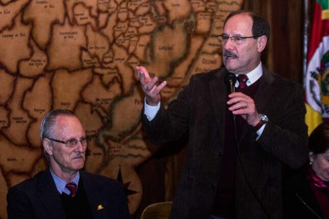 Porto Alegre 03.07.15 – Presidente do sistema Ocergs – Sescoop RS Vergílio Perius e o Governador josé Ivo Sartori . Café da manhã de Lançamento do Prêmio Cooperativismo Gaúcho de Jornalismo e da Revista Expressão do Cooperativismo – Galpão Crioulo do Palácio Piratini .- FOTO – Jackson Ciceri