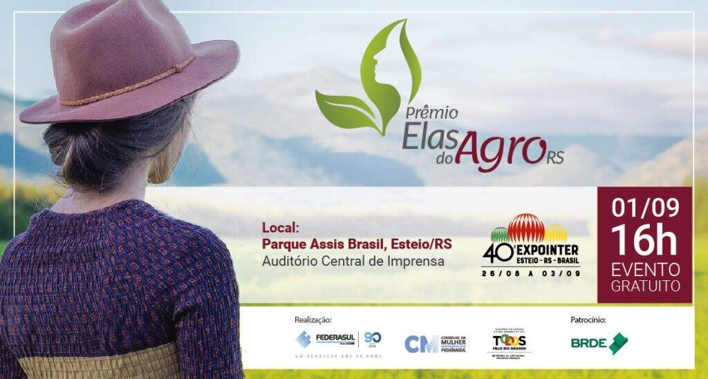 Se destacar no cenário do agronegócio se tornou realidade para muitas mulheres do Estado, que ao se tornarem empreendedoras, passaram a liderar os negócios no campo. Para comemorar e valorizar essas mulheres a Federasul, em parceria com a Secretaria da Agricultura, Pecuária e Irrigação do Rio Grande do Sul e o Banco Regional de Desenvolvimento do Extremo Sul (BRDE), promovem o Prêmio Elas do AgroRS, que acontecerá no dia 01 de setembro, no Parque de Exposições Assis Brasil em Esteio.