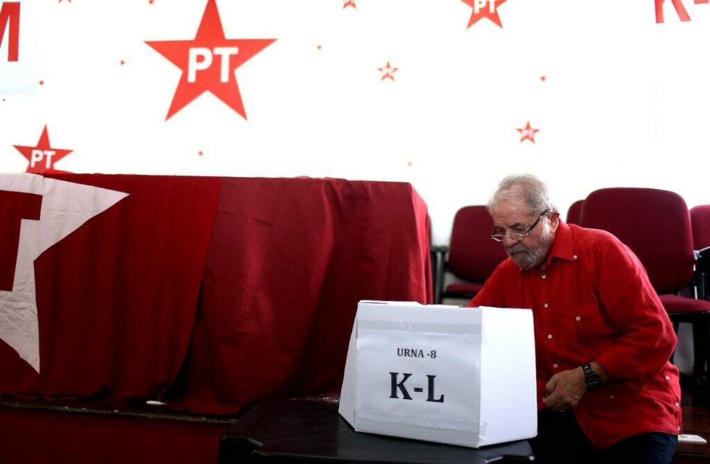 Após votar, hoje pela manhã, Lula abraçou militantes e posou para fotos, mas não quis dar declarações, deixando a tarefa para Marinho, candidato do ex-presidente para a presidência estadual do PT.