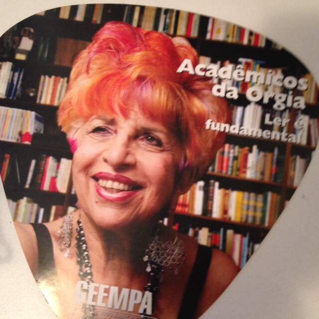 • Esther Pillar Grossi esteve na noite do desfile da Escola Bambas da Orgia e oportunamente distribuiu um bem elaborado mimo: um abanico com reconhecimento aos Bambas pelo uso das letras em sua comissão de frente, destacando a importância da alfabetização. O texto traz referência à escola da poetiza Ana Aurora do Amaral Lisboa, que funcionou em Rio Pardo, tornando-se um marco no ensino gaúcho, como foi a Escola João Belém, em Santa Maria.