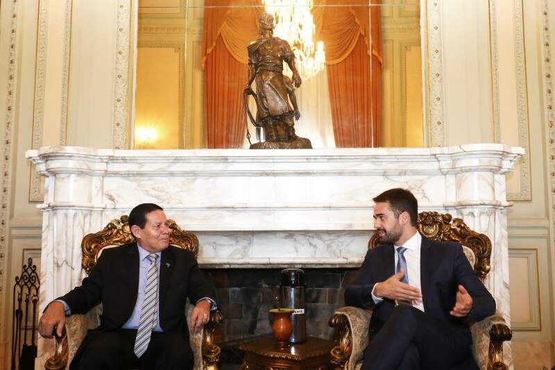 O presidente da República em exercício, general Hamilton Mourão, se encontrou, com o governador Eduardo Leite no Palácio Piratini, nesta sexta-feira (22).