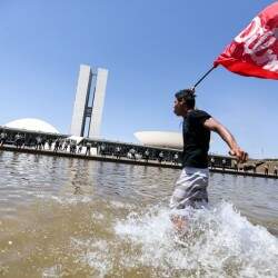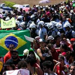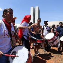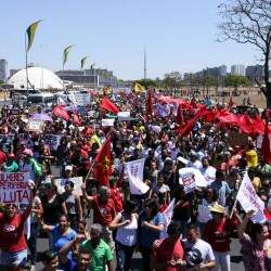 Protesto em Brasília. Manifestantes entoaram o coro: “Golpistas, fascistas, não passarão”. (Foto: Marcelo Camargo/ABr)