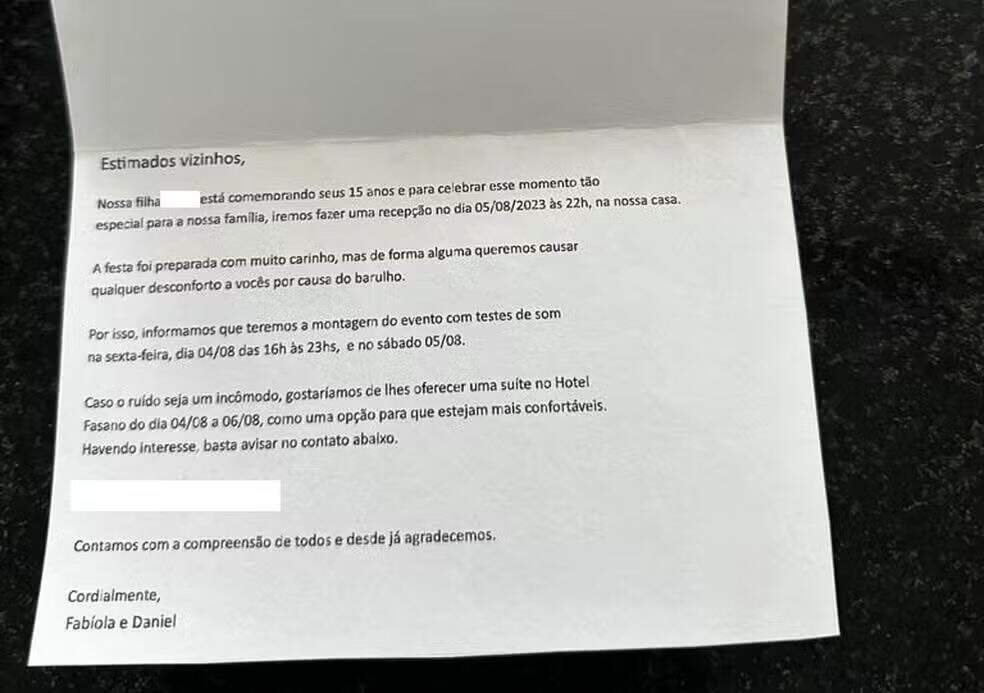 Vorcaro ofereceu hospedagem em hotel de luxo para vizinhos em razão da festa da sua filha. (Foto: Reprodução)