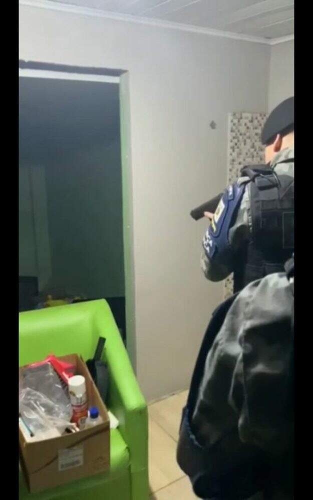 O quatro criminoso foi preso no bairro Campo Novo. Com ele, foram apreendidos uma pistola, munições de diversos calibres, quase dois quilos de maconha, 307 gramas de cocaína, 17 gramas de crack, materiais para embalagem de drogas, uma balança de precisão e um celular. O homem estava foragido.