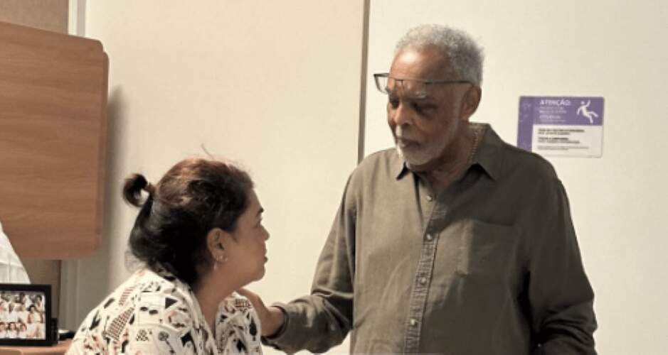 Foto: Reprodução/InstagramNa noite desta quarta-feira (09), Preta Gil, que está internada em São Paulo para tratar uma infecção urinária, recebeu a visita de Gilberto Gil. O registro foi compartilhado por Bela Gil nas redes sociais.