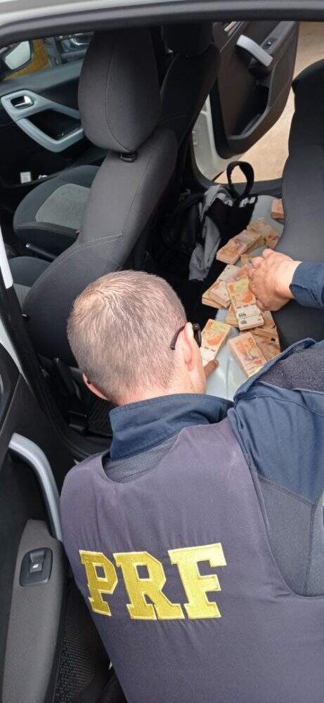 Os policiais abordaram um Peugeot 208, com placas de Uruguaiana. Durante buscas no interior do veículo, encontraram 5 milhões de pesos argentinos escondidos embaixo do banco traseiro. A quantia é equivalente a mais de 160 mil reais.