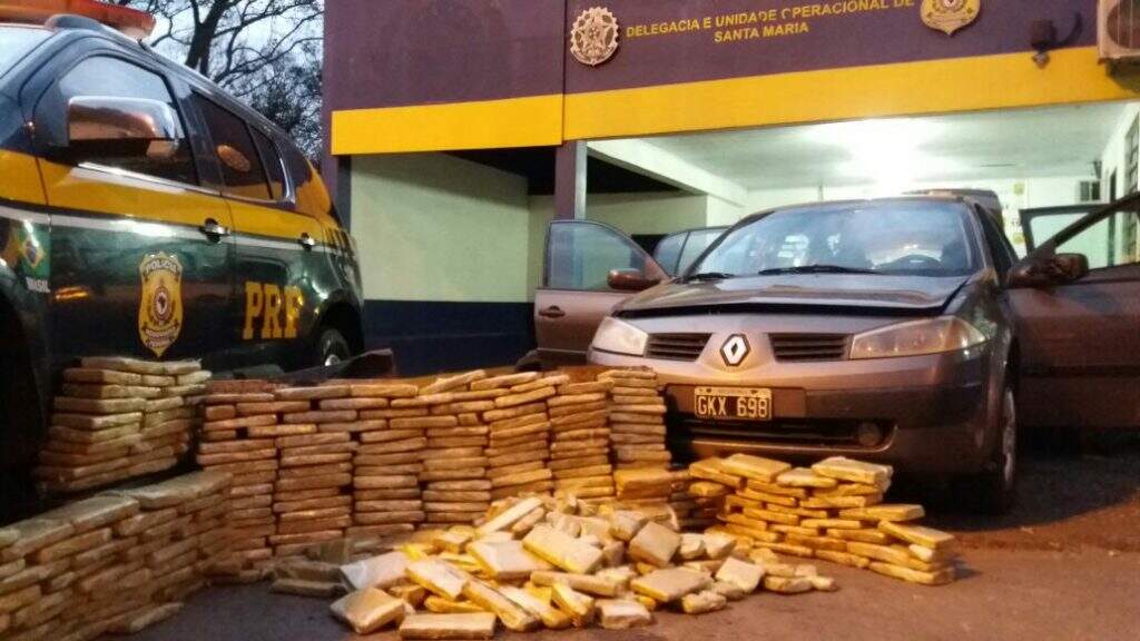 A PRF (Polícia Rodoviária federal) apreendeu 206 kg de maconha, na tarde deste domingo (9), na BR-158, em Santa Maria. Os policiais abordaram um veículo Mégane, com placas argentinas, ocupado por um paraguaio, de 21 anos, e uma paraguaia, de 27. O condutor apresentou documentos que não eram seus.