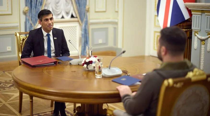 Foto: Governo Ucraniano/DivulgaçãoO primeiro-ministro do Reino Unido, Rishi Sunak, anunciou um pacote de defesa aérea de US$ 60 milhões (equivalente a R$ 322 milhões) para a Ucrânia durante sua primeira visita a Kyiv no sábado (19), segundo informou a Downing Street.