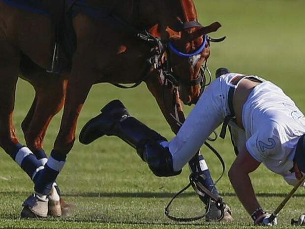 O príncipe Harry levou um tombo durante partida de polo beneficente na África do Sul. Ele caiu do cavalo mas aparentemente não se machucou, e retornou à partida.
