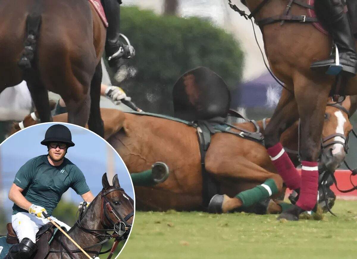Foto: ReproduçãoO príncipe Harry passou por maus bocados neste domingo (12) enquanto participava de uma partida de polo na Califórnia. O Duque de Sussex estava em cima de seu cavalo quando foi arremessado pelo animal, indo ao chão junto com ele.