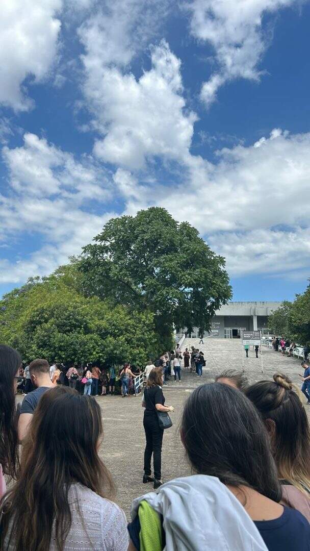 As pessoas que estavam no edifício deixaram o local depois que o alarme de incêndio disparou