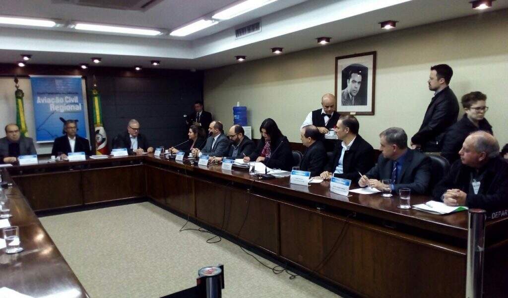 Durante a manhã desta segunda-feira (3), uma reunião ocorreu na Assembleia Legislativa para tratar das obras nos aeroportos gaúchos. O vereador Paulo Neckle (PMDB), que preside a comissão especial para tratar dos assuntos do Aeroporto Lauro Kortz, e o secretário de Desenvolvimento, Carlos Eduardo Lopes da Silva, estiveram reafirmando a necessidade de contemplação do aeroporto da cidade na lista de espaços que receberão recursos federais para melhorias. O encontro foi promovido pela Frente Parlamentar em Defesa da Aviação Civil Regional e teve a participação do secretário nacional da Aviação Civil, Dario Lopes, o secretário estadual de Transportes, Pedro Westphalen, e deputados.