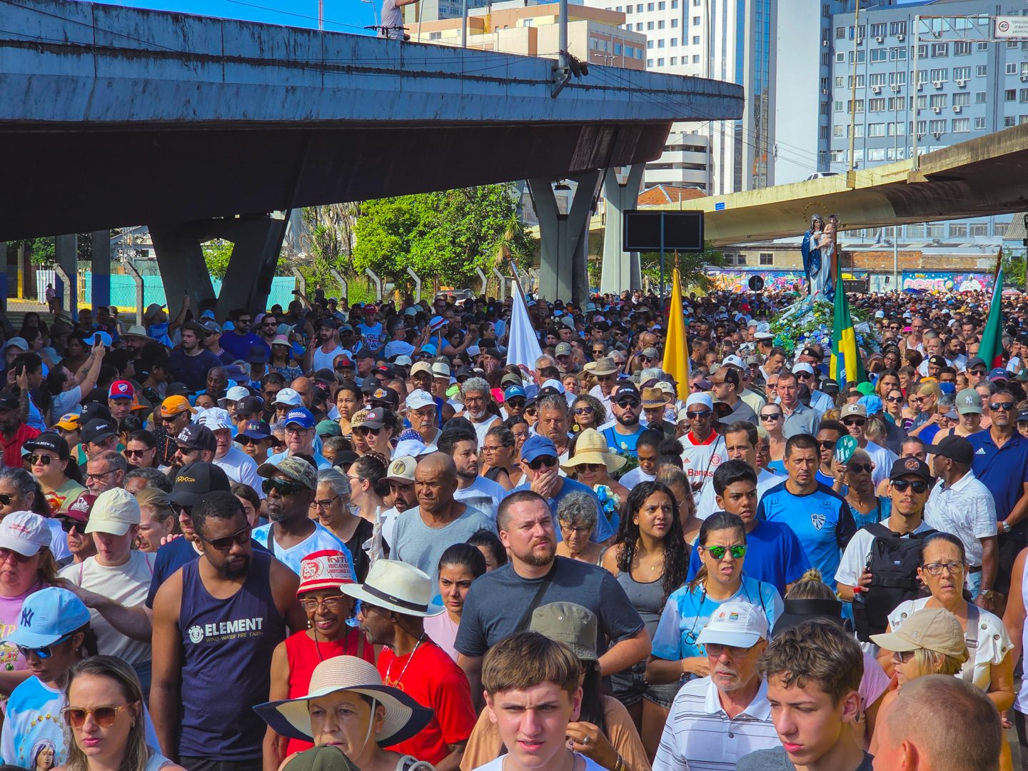 Após a caminhada, a imagem de Nossa Senhora dos Navegantes chegou à praça no santuário de nome inspirado na padroeira. O cardeal Dom Jaime Spengler, arcebispo de Porto Alegre, celebrou então uma missa campal.