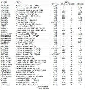 De acordo com informações divulgadas nesta terça-feira (02), pelo Programa de Proteção e Defesa do Consumidor (Procon) foi realizado um novo levantamento de preços dos combustíveis em 40 postos da Capital. Os valores da gasolina comum variam de R$ 4,199 a R$ 4,599. Já os preços do etanol oscilam entre R$ 3,779 e R$ 4,297. Quanto ao diesel S500, os valores vão de R$ 3,299 a R$ 3,699, enquanto os do diesel S10 ficam entre R$ 3,390 e R$ 3,699.