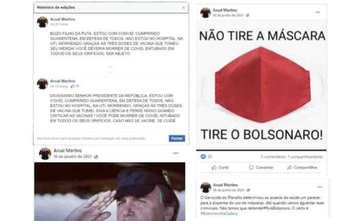 Foto: ReproduçãoO Conselho Nacional do Ministério Público (CNMP) suspendeu por cinco dias o procurador Arual Martins, do Ministério Público de São Paulo, por publicações contra o presidente da República, Jair Bolsonaro (PL), nas redes sociais. Em seu perfil no Facebook, Martins chamou Bolsonaro de “idiota” e “genocida” e disse que ele “deveria morrer de covid”. Além de escrever: “Não tire a máscara, tire o Bolsonaro”.