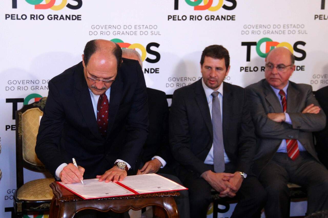 Porto Alegre – Governador José Ivo Sartori , Secretário de Agricultura , Ernani Polo e o Secretário da Agricultura de São paulo, Arnaldo Jardim. lançamento Programa Estadual de Conservação do Solo e Água.. – FOTO – Jackson Ciceri