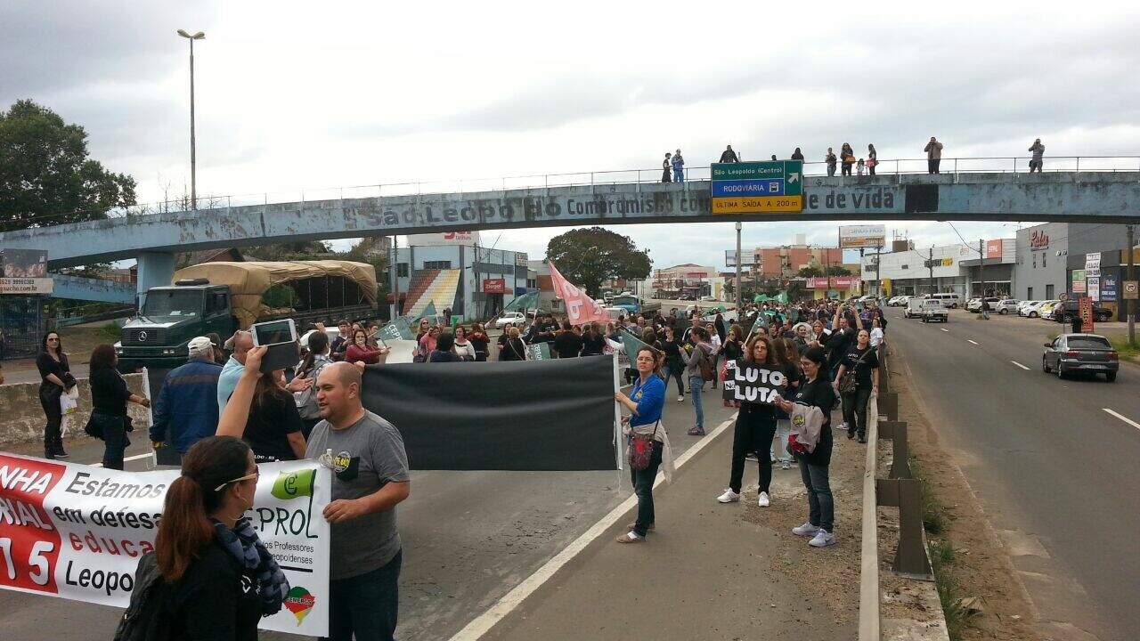 Um protesto de professores, em São Leopoldo, causou o bloqueio total na BR-116. A interrupção do trânsito durou cerca de 15 minutos e provocou um congestionamento de 5 quilômetros.