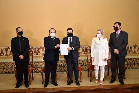 Desembargador Voltaire entrega PCS em mãos para o Deputado Gabriel Souza.