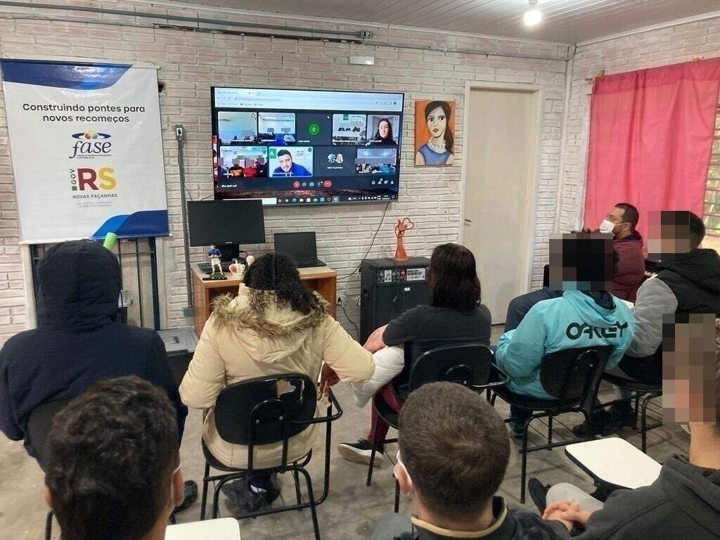 Foto: Divulgação/FaseAconteceu nesta quinta-feira (19) a aula magna de Vinicius Mendes Lima, idealizador da Besouro Agência de Fomento Social, inaugurando a parceria técnico-pedagógica da Fundação de Atendimento Sócio-Educativo (Fase) com a Associação Junior Achievement do Rio Grande do Sul (JARS) para a aplicação de programas de empreendedorismo junto a jovens privados de liberdade.
