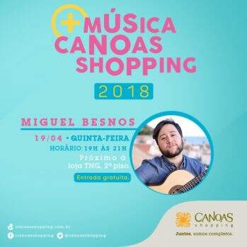 Projeto Mais Música – Miguel Besnos/ 19 de abril/ 19h às 21h/ Canoas Shopping – Avenida Guilherme Schell, 6750 – Canoas/RS/ Entrada franca