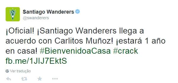 Tido como promessa de reforço para o Grêmio, o jogador Carlos Muñoz foi anunciado como o novo jogador do Santiago Wanderers, do Chile, clube que o projetou para o futebol. A contratação foi anunciada pelo twitter do time.