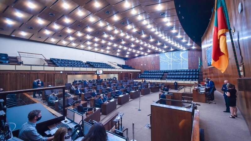 Foto: Joel Vargas/ALRS/DivulgaçãoOito projetos encaminhados pelo governo do Estado foram aprovados por deputados estaduais nesta quarta-feira (16) na Assembleia Legislativa. Em uma sessão extraordinária híbrida (presencial e por videoconferência) o parlamento debateu sobre as medidas para modernização da gestão, equilíbrio fiscal, privatização e concessões do Poder Executivo.
