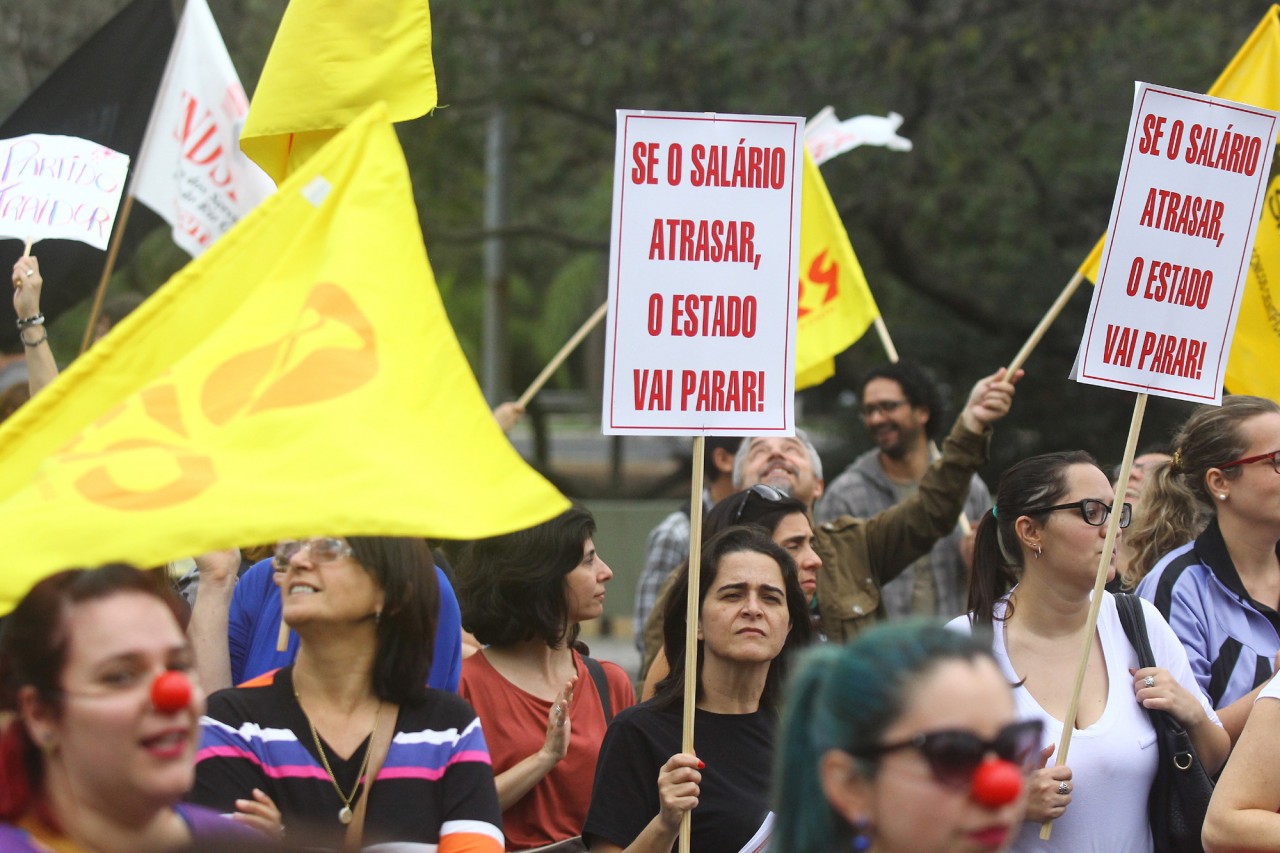 Servidores estaduais protestam contra o Governo devido ao parcelamento do salário. FOTO: LUCAS UEBEL