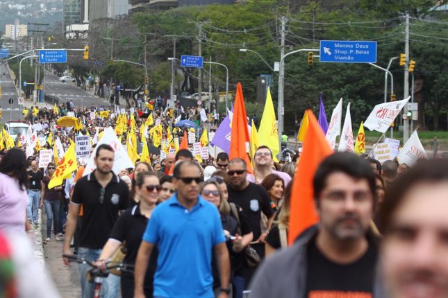Servidores estaduais protestam contra o Governo devido ao parcelamento do salário. FOTO: LUCAS UEBEL