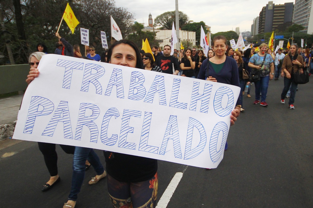 Servidores estaduais protestam contra o Governo devido ao parcelamento do salário. FOTO: LUCAS UEBEL
