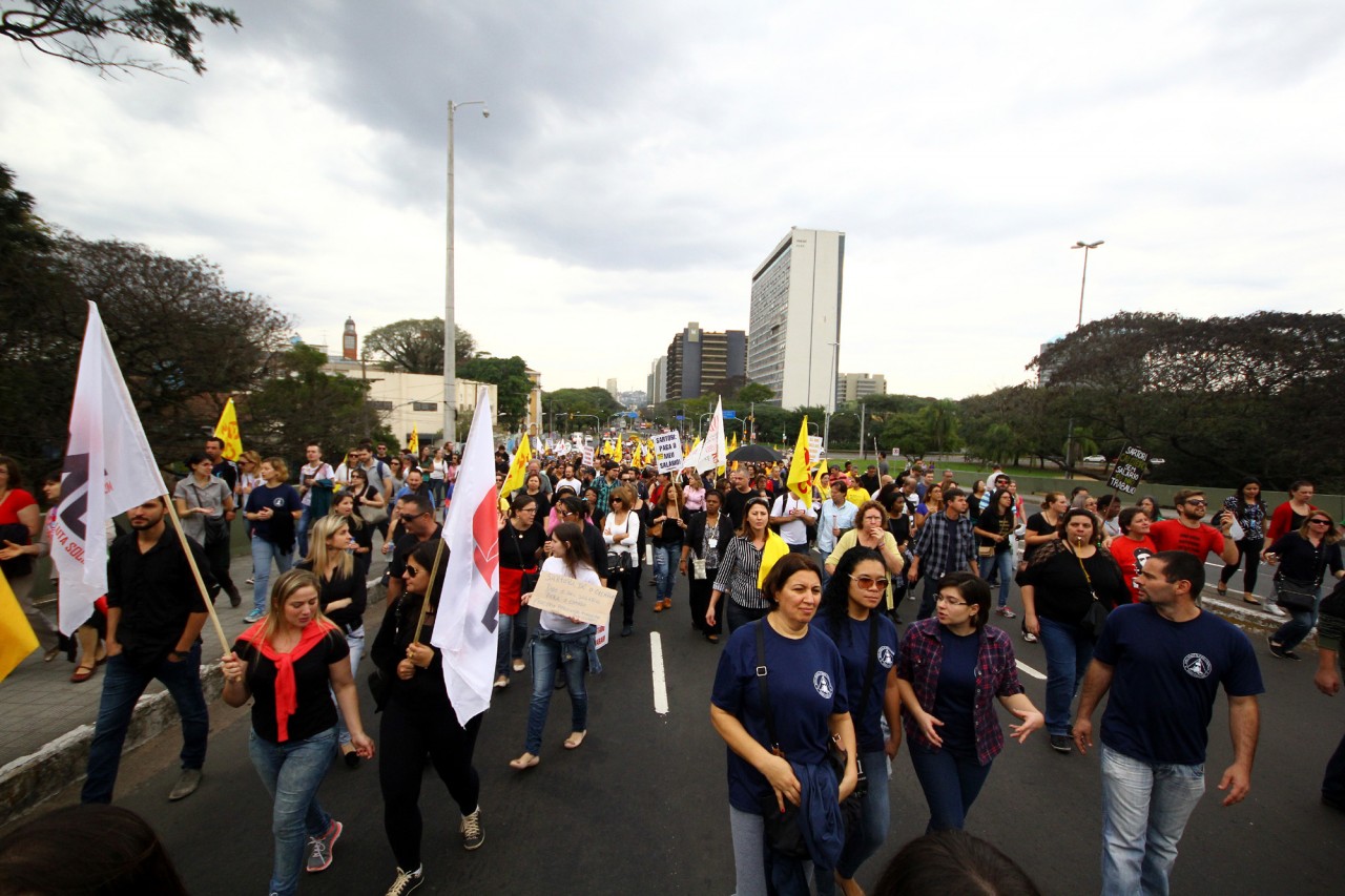 Servidores estaduais protestam contra o Governo devido ao parcelamento do salário. FOTO: LUCAS UEBEL
