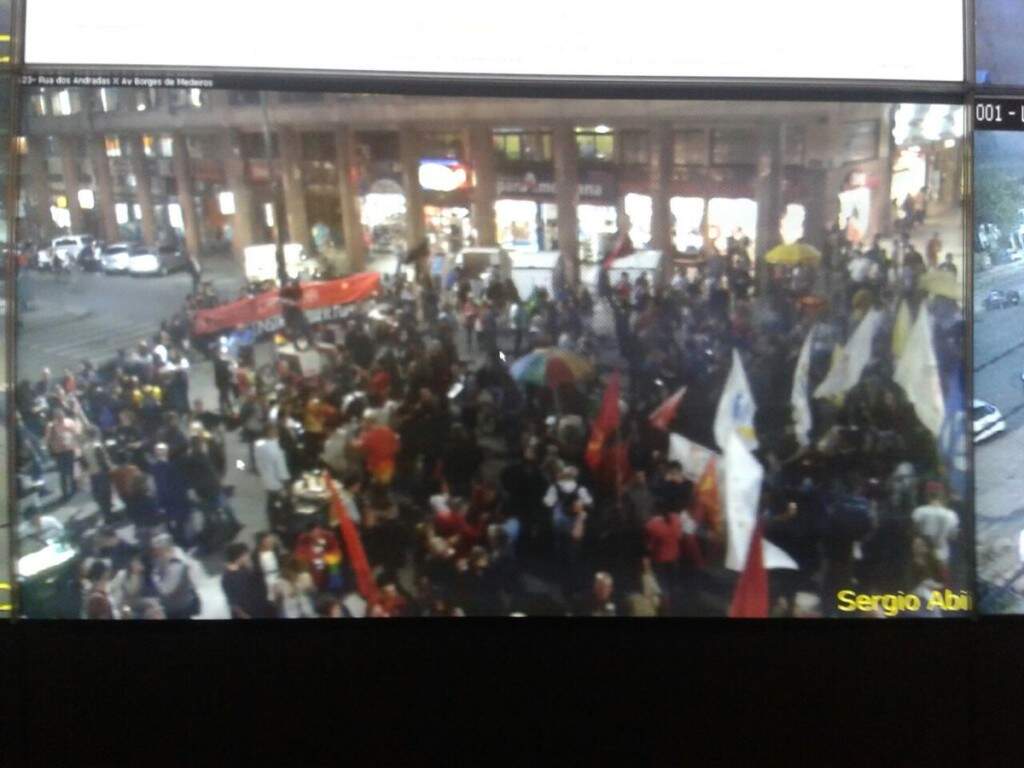 Durante a manifestação, a Brigada Militar teve de intervir para liberar o trânsito em algumas vias. Alguns integrantes derrubaram contêineres de lixo, enquanto outros colocavam os equipamentos novamente no lugar. Uma agência bancária teve vidros quebrados na rua Venâncio Aires.