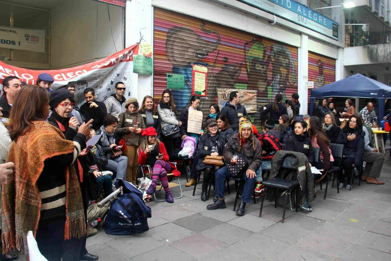 Municipários em greve protestam em Porto Alegre (Foto: Jackson Ciceri/O Sul)