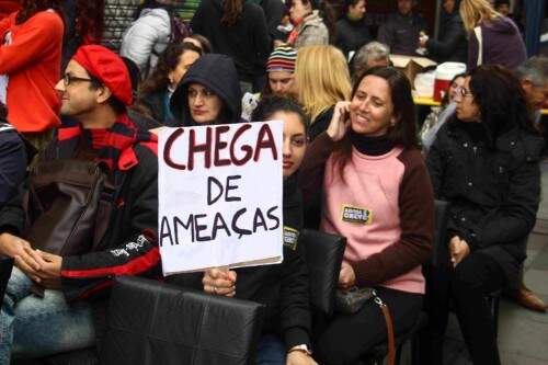 Municipários em greve protestam em Porto Alegre (Foto: Jackson Ciceri/O Sul)