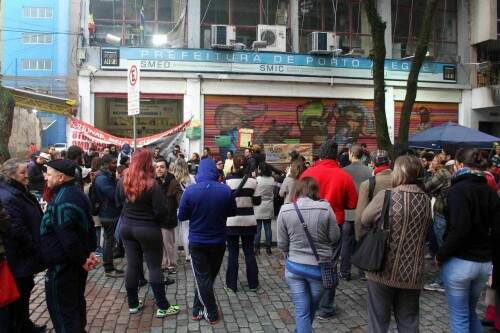 Municipários em greve protestam em Porto Alegre (Foto: Jackson Ciceri/O Sul)