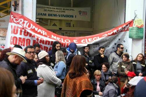 Municipários em greve protestam em Porto Alegre (Foto: Jackson Ciceri/O Sul)
