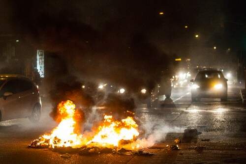 Porto Alegre 2016 – grupo protesta contra a RBS , colocando fogo em pneus na Av. Ipiranga com Av. Érico Verissimo, FOTO Jackson Ciceri