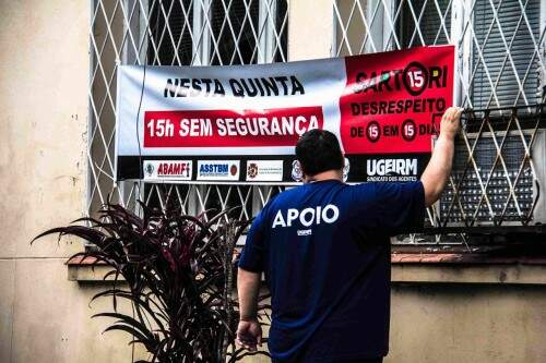 Servidores estaduais da segurança protestam contra parcelamento de salários (Foto: Jackson Ciceri/O Sul)
