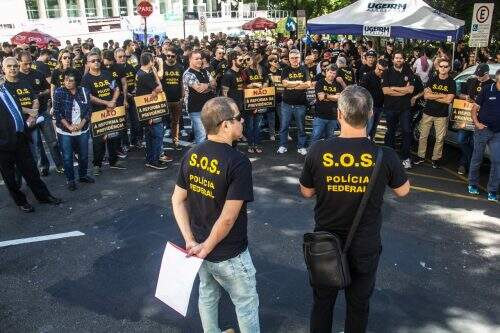 Protesto de servidores da segurança pública em frente ao Palácio Piratini (Foto: Jackson Ciceri/O Sul)