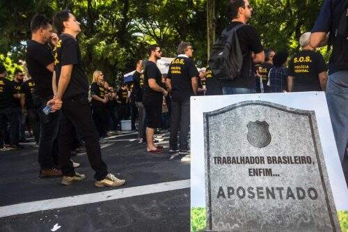 Protesto de servidores da segurança pública em frente ao Palácio Piratini (Foto: Jackson Ciceri/O Sul)