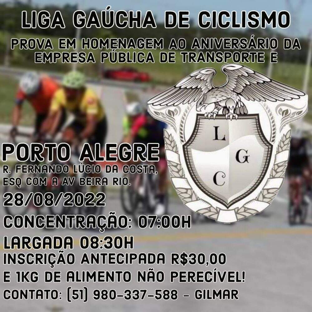 Foto: DivulgaçãoA Liga Gaúcha de Ciclismo realiza na manhã deste domingo (28), na Orla do Guaíba, em Porto Alegre, uma prova em homenagem ao aniversário da EPTC (Empresa Pública de Transporte e Circulação).