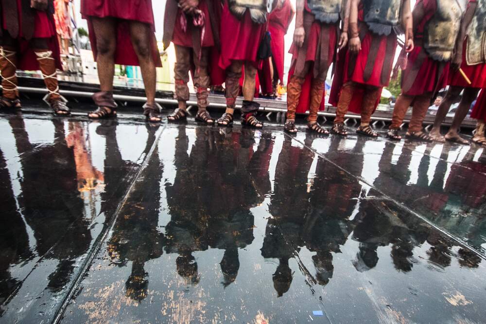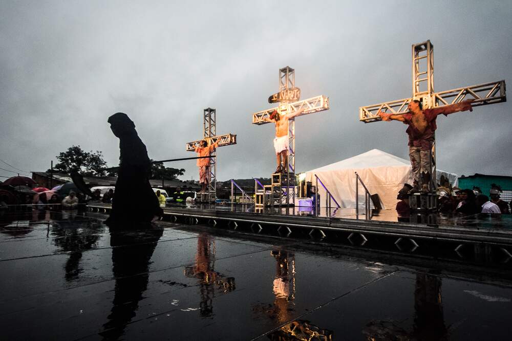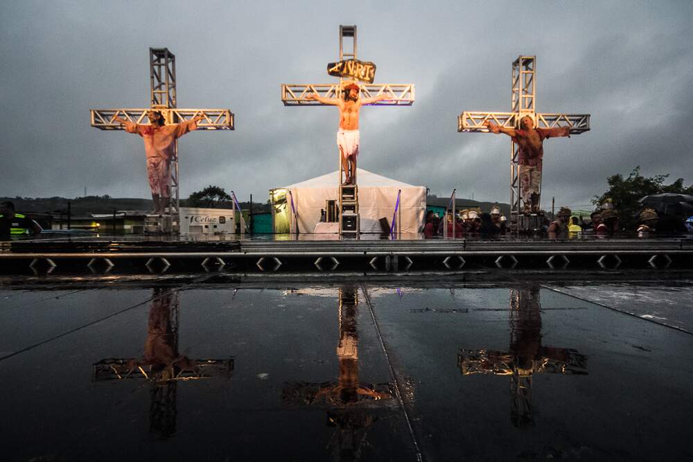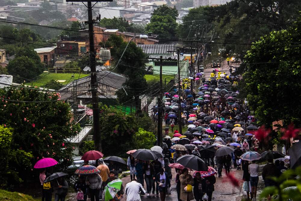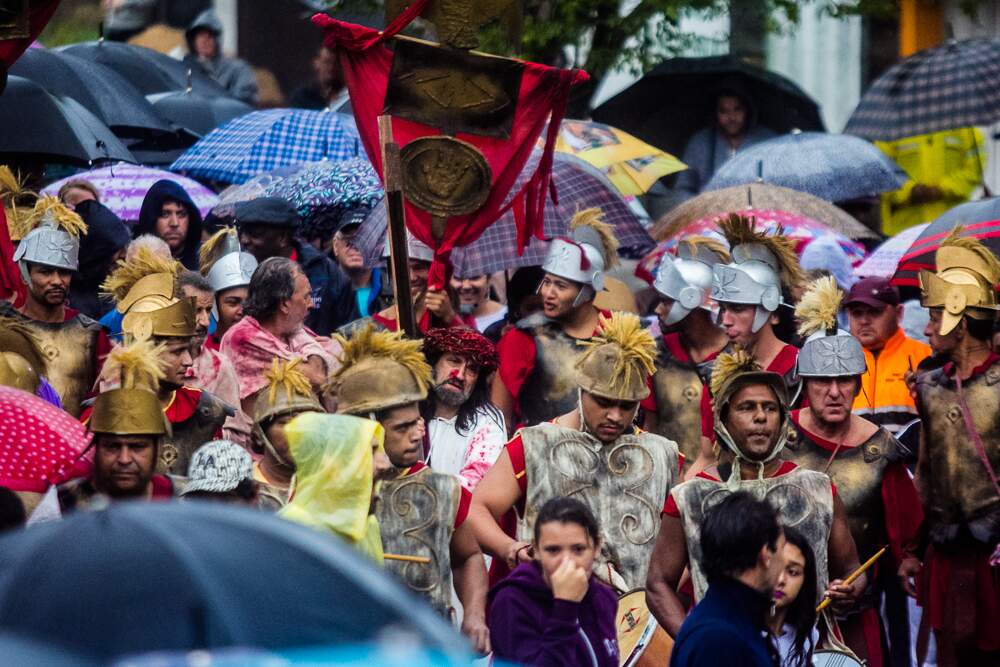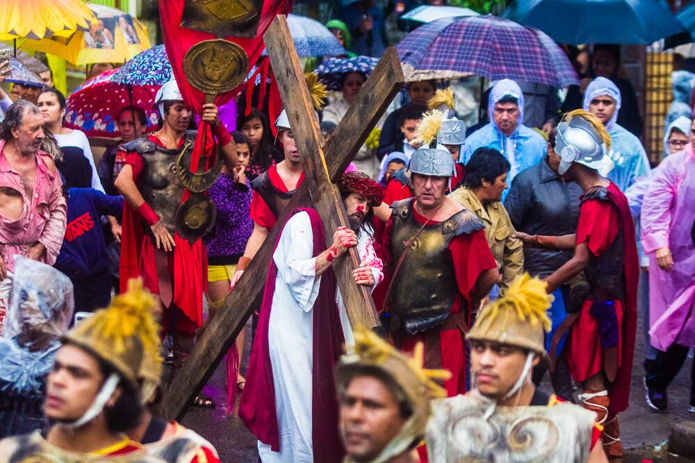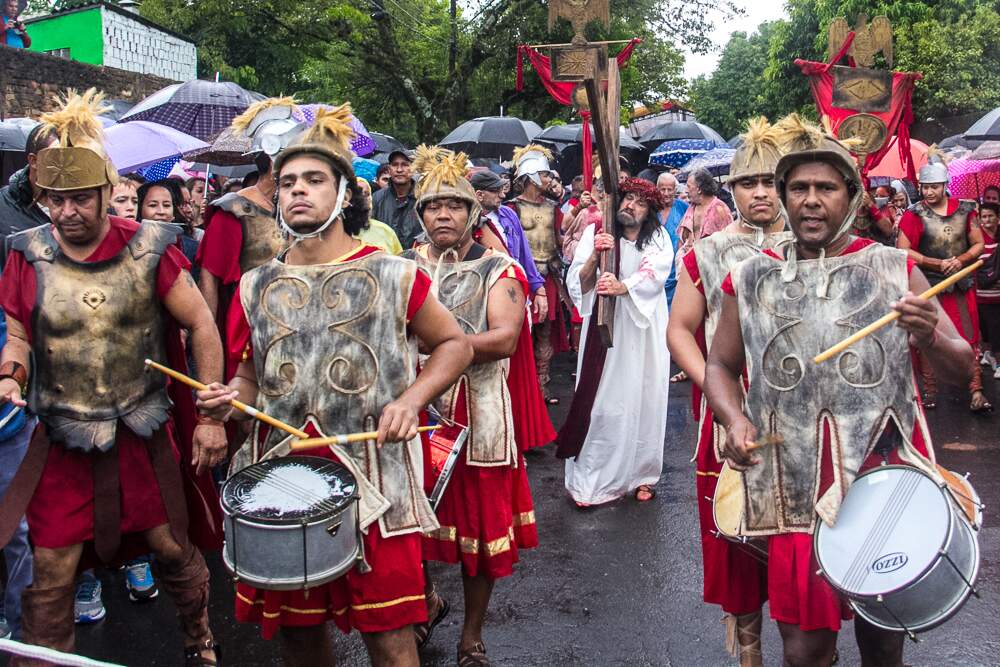 O mau tempo não afastou fiéis da Procissão da Sexta-Feira Santa em Porto Alegre. Mesmo com a chuva intensa, o público acompanhou a encenação da Paixão de Cristo no Morro da Cruz.