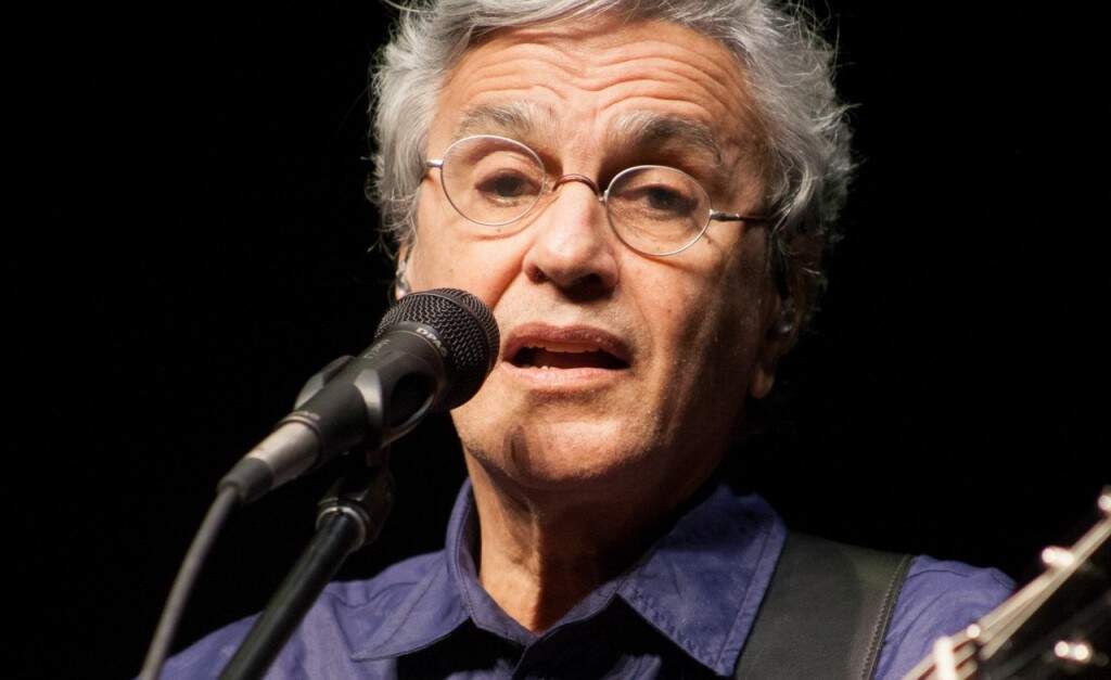 Diante dos repetidos gritos de protesto, Caetano soltou um discreto “Fora, Temer” ao término da segunda canção –gesto amplamente aplaudido pelo público. (Folhapress)