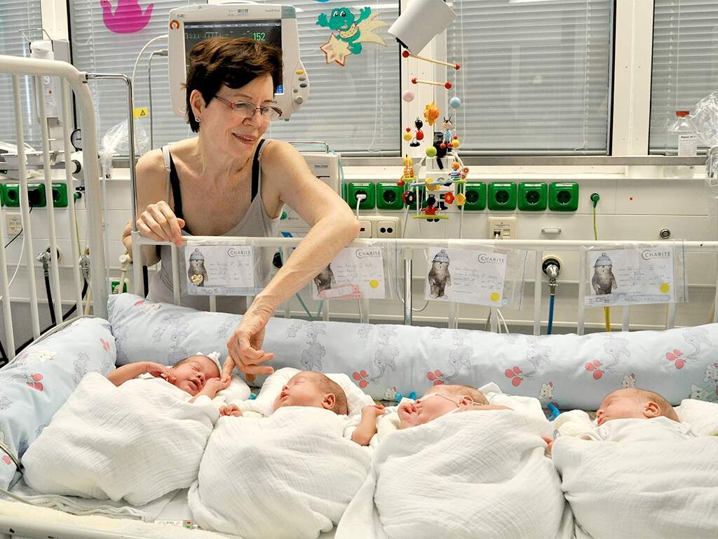 Três meses depois do nascimento, os quadrigêmeos prematuros, cuja mãe tem 65 anos, deixaram o Hospital de Caridade de Berlim, na Alemanha, e já estão em casa, informou a instituição. “Quando bebês prematuros se aproximam da data do parto inicialmente prevista, então é hora de deixar o hospital”, explicou o chefe de neonatologia do hospital, Christoph Bührer, afirmando que “muitas vezes eles voltam para casa antes desta data”.
