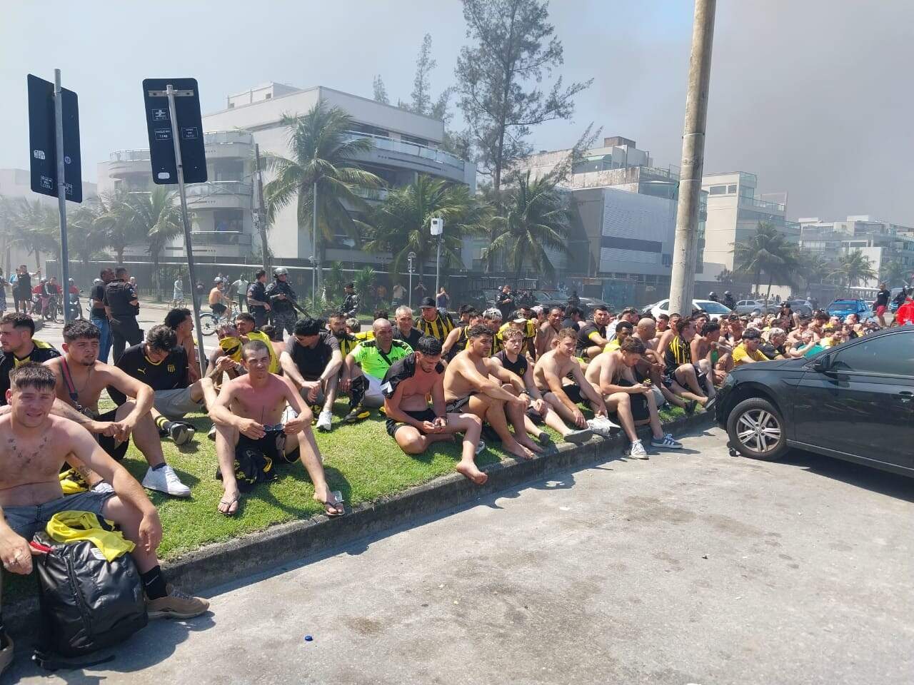 Foto: Divulgação/PMERJCentenas de torcedores do Peñarol, do Uruguai, provocaram caos nessa quarta-feira (23) no Rio de Janeiro. Eles estavam na cidade para o primeiro jogo das semifinais da Libertadores contra o Botafogo. Segundo a Polícia Militar, a confusão começou por volta do meio-dia, depois que um dos integrantes do grupo furtou um celular de uma padaria. Foi quase uma hora e meia de selvageria e vandalismo praticamente sem repressão até que chegassem reforços da própria PM e do Corpo de Bombeiros. O governador Cláudio Castro afirmou que o grupo será escoltado para fora do Estado e não assistirá à partida.
