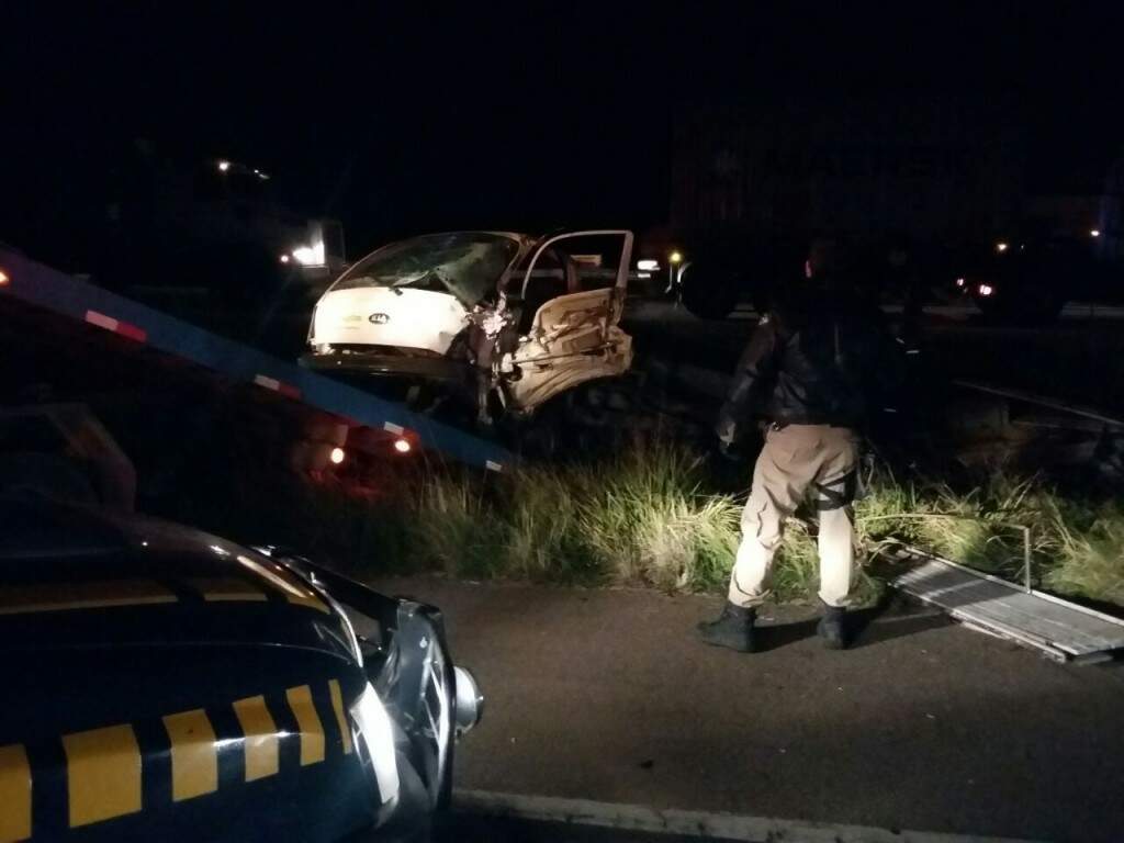 No momento, o veículo Kia, que seguia no sentido contrário, colidiu frontalmente, saindo da pista para a direita. Um veículo Peugeot, que seguia após a caminhonete, colidiu frontalmente no primeiro, porém sem grandes danos.