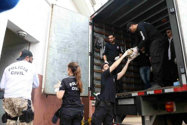 Porto Alegre – Agentes do Denarc da Polícia Civil , carregam caminhão com 4.8 toneladas de drogas apreendidas para incineração . FOTO – Jackson Ciceri