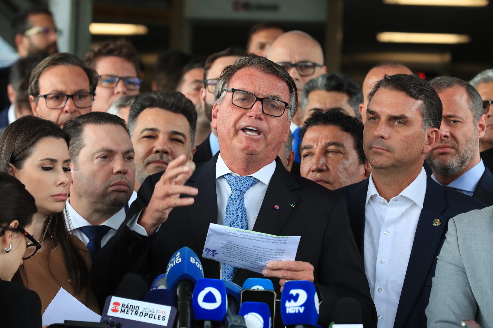 O ex-presidente Jair Bolsonaro (PL) evitou responder a perguntas de jornalistas nessa segunda-feira (28), ao sair da sede do PL, seu partido, em Brasília. Ele alegou que conceder entrevistas poderia levá-lo a uma prisão preventiva. “Quer que eu vá para cadeia amanhã?”, disse a jornalistas. “Se o editor de vocês conseguir autorização do Supremo para eu poder falar, falo com o maior prazer com vocês.”