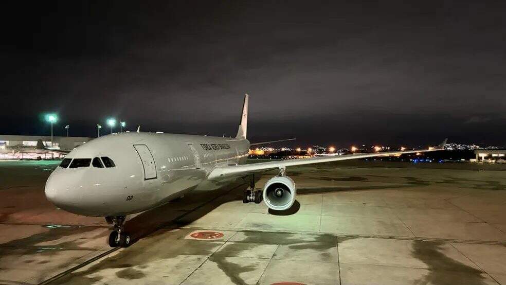 A aeronave KC-30 decolou de Tel Aviv, Israel, por volta das 12h (horário de Brasília) de sábado (14) e pousou no Aeroporto Internacional do Rio de Janeiro à 1h45 de domingo, segundo a FAB (Força Aérea Brasileira). O voo também incluiu 16 animais de estimação dos brasileiros.