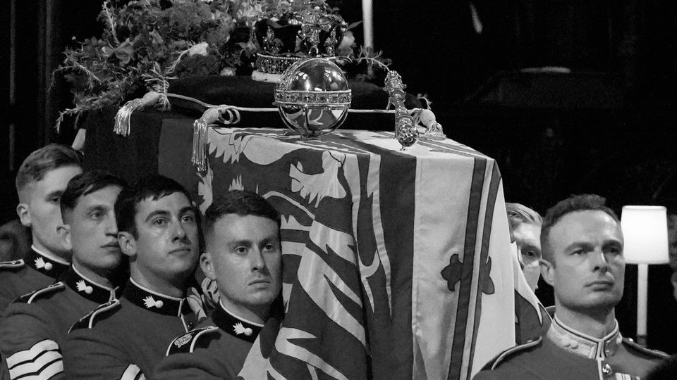 Na manhã desta segunda (19, no horário de Brasília), o caixão foi retirado do catafalco onde estava por um grupo de carregadores do 1º Batalhão de Guardas de Granadeiros e levado em procissão de Westminster Hall para a Carruagem de Armas do Estado da Marinha Real.