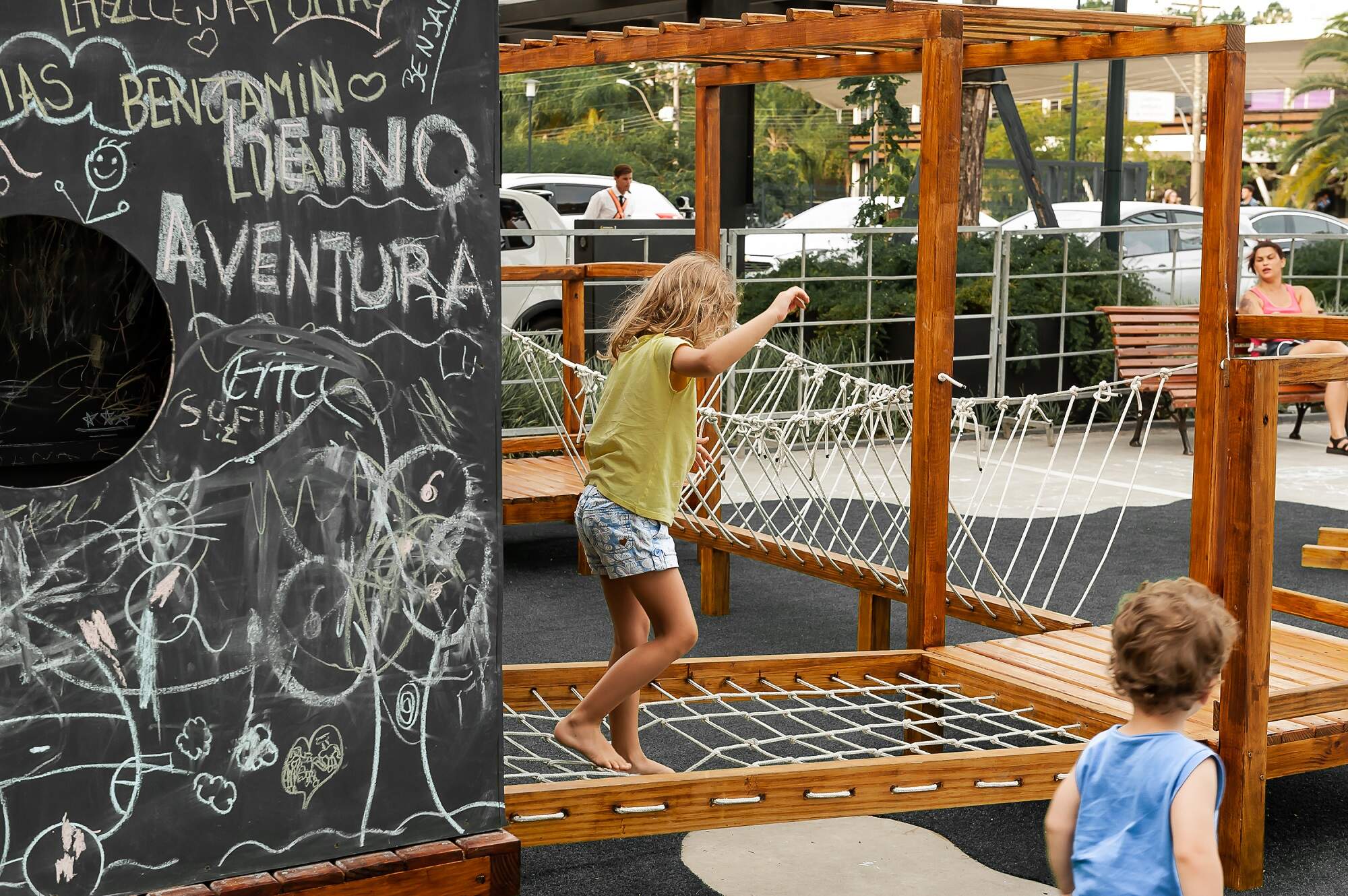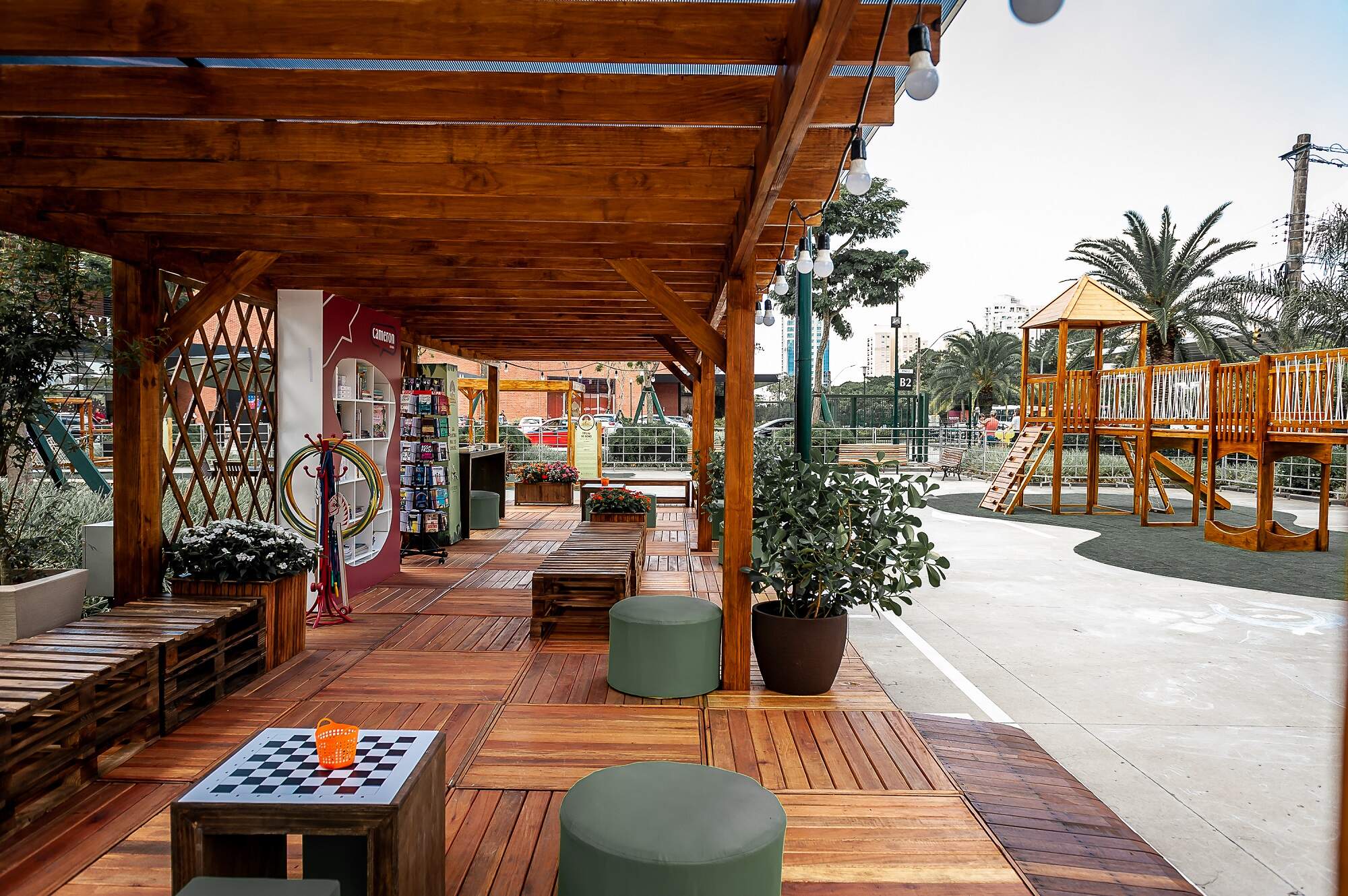 É por meio de jogos lúdicos que os pequenos trabalham capacidades fundamentais como coordenação motora, equilíbrio, comunicação, além de aprenderem a lidar melhor com os seus sentimentos. Apesar disso, hoje é mais comum encontrarmos crianças se divertindo por meio de aparelhos eletrônicos, deixando de lado atividades clássicas como pula-corda, corrida de sacos, bambolês e amarelinha. Para resgatar esse espírito, o Iguatemi oferece um espaço ao ar livre com brinquedos tradicionais, permitindo aos pais relembrarem a infância e interagir com seus filhos por meio de jogos e momentos que conectam as diferentes gerações.